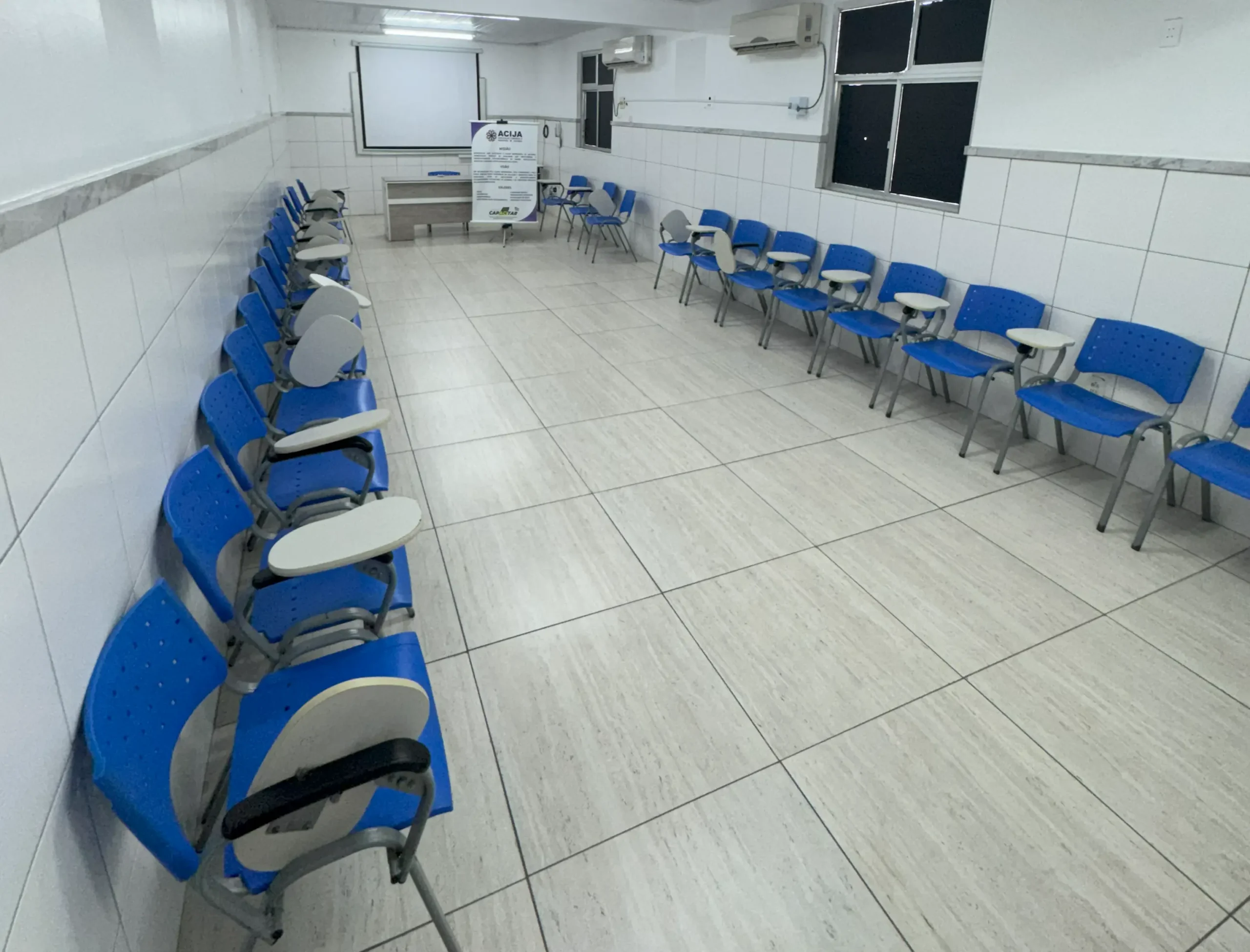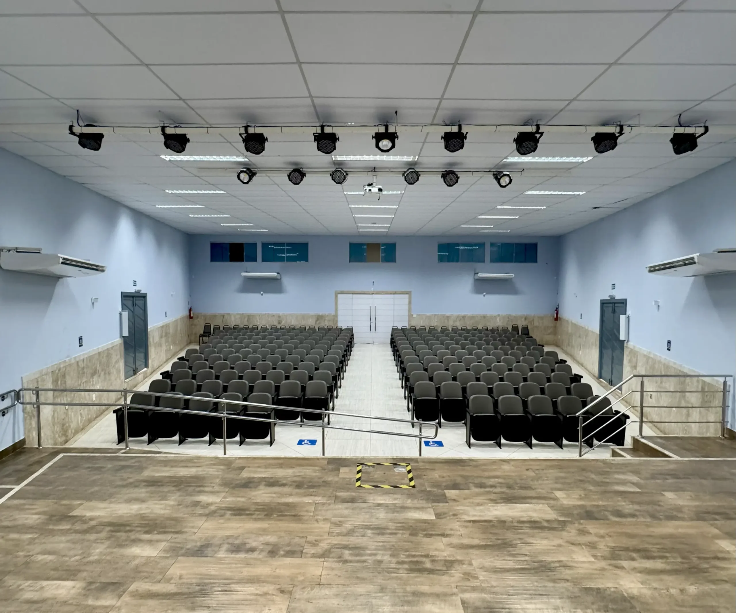 Com capacidade para até 260 pessoas, o auditório da ACIJA oferece um ambiente climatizado, acessível e confortável. Conta com estrutura ideal para eventos, palestras, treinamentos e encontros corporativos. Dispõe de recepção ampla, apoio para coffee breaks e acolhimento dos participantes.